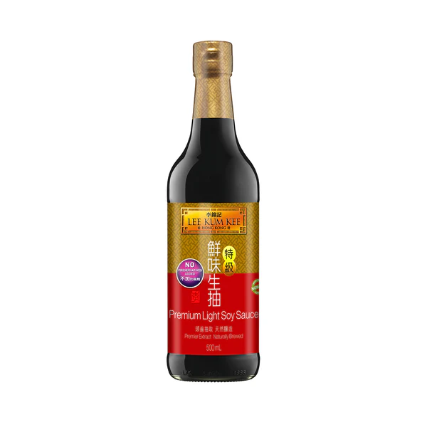 Premium Light Soy Sauce (500ml), low sodium with a delicate flavor. Excellent for marinating, dipping, or seasoning Asian dishes.